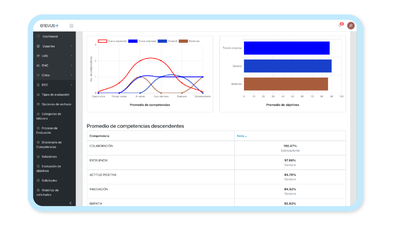 Te ayudará a identificar las fortalezas y áreas de oportunidad, alineando los objetivos individuales con los de tu empresa.